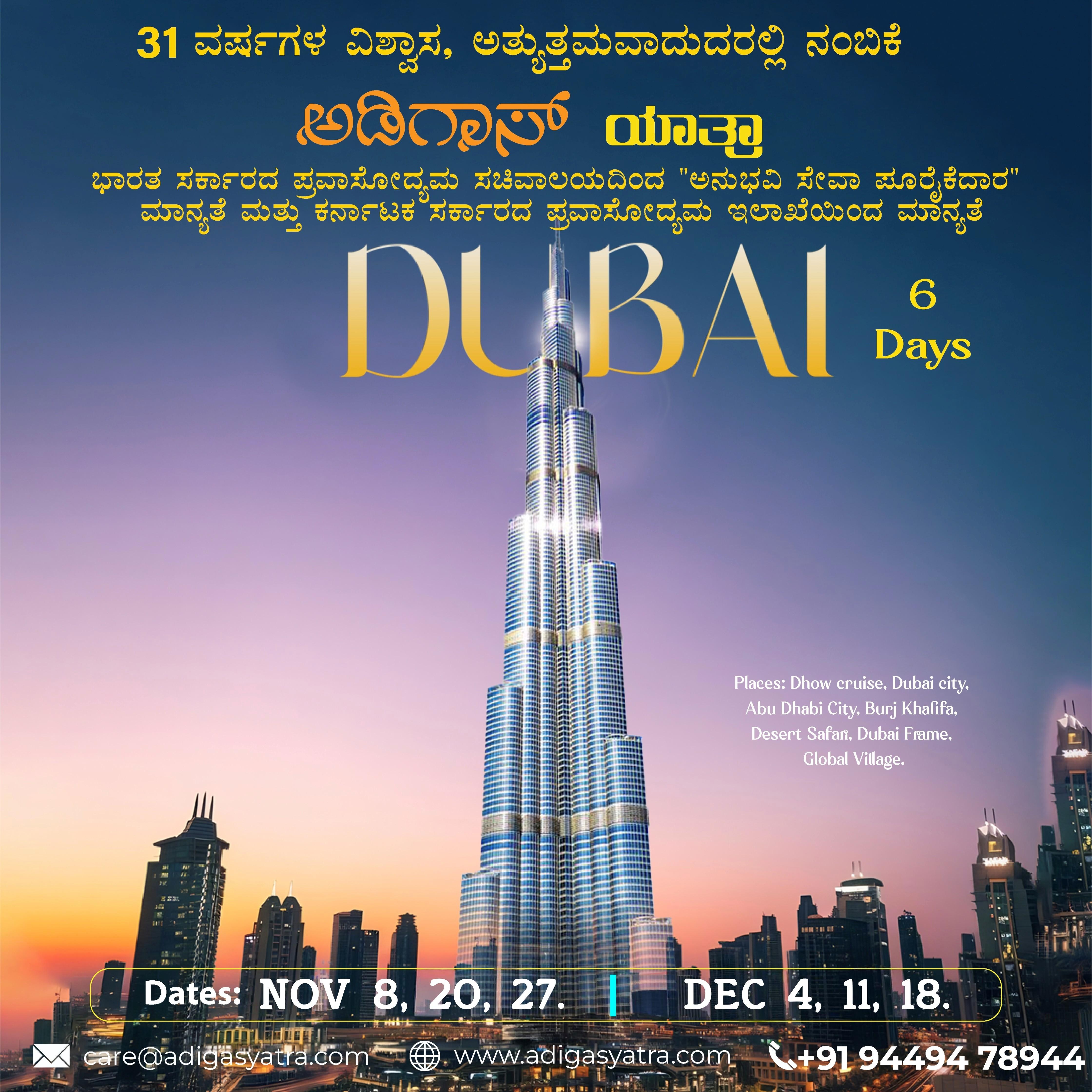 - Discover the World with Adigas Yatra! With over 31 years of experience, Adigas Yatra has been a trusted name in organizing unforgettable domestic and international tours. Whether you're dreaming of exploring vibrant cities, relaxing on pristine beaches, or experiencing rich cultural heritage, we offer a wide range of tailored travel packages to suit your needs.
